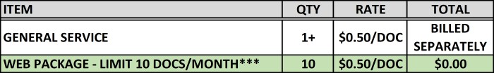 - Doc2PDF Pricing – limited service of 10 documents per month will be free of charge for the term that corresponds to the Feniva Cyber Works Website Design and Managed Hosting Package selected by the Client. Otherwise, the applicable charge is $0.50 per document.